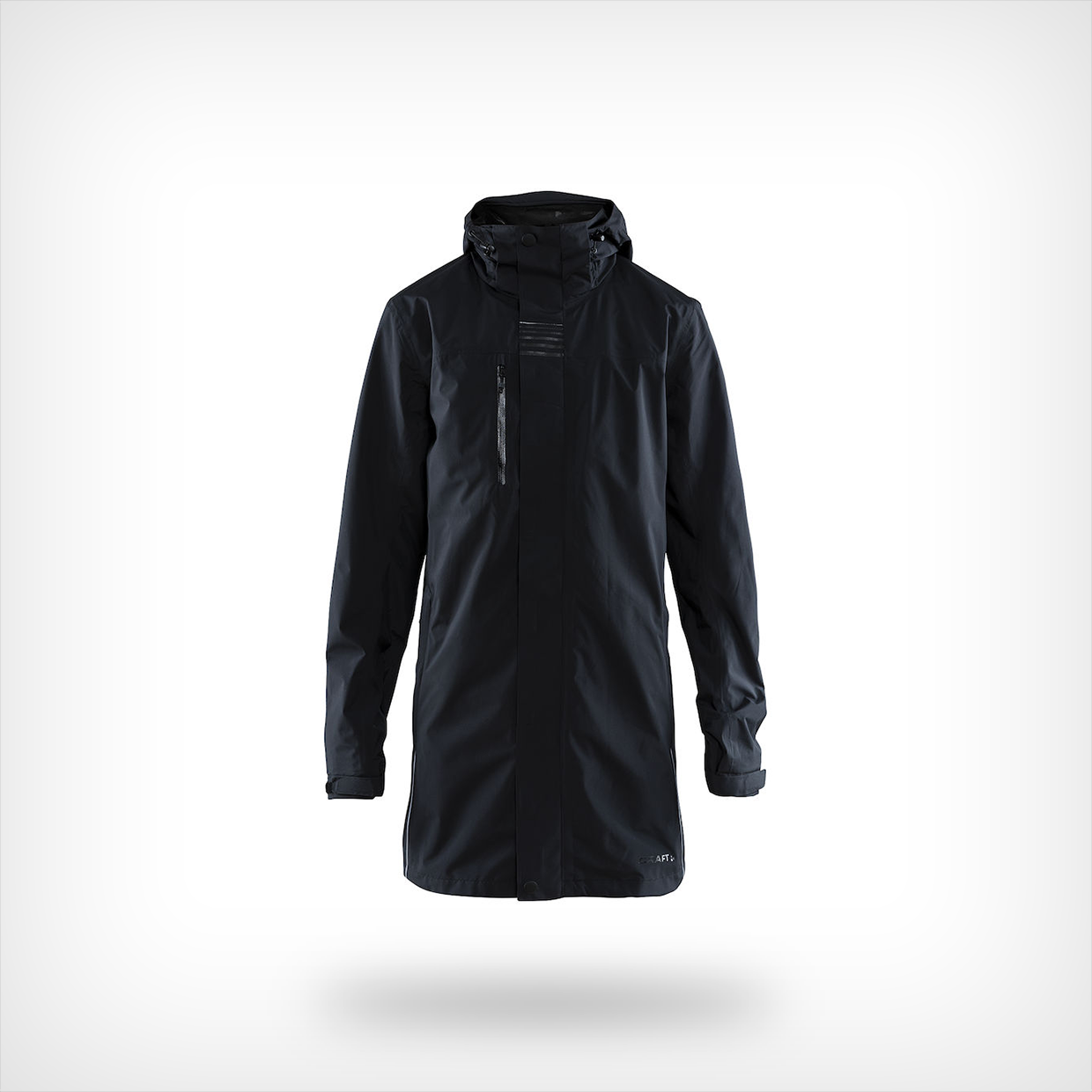 De Craft Urban heren regenjas is een lange jas met getapete naden, waterdichte ritssluiting en afneembare capuchon. Waterdichte stoffen zorgen voor 100% waterdichtheid. Bovendien wordt de regenjas geleverd met waterdichte ritsen, multi-verstelbaar en afneembare capuchon, verstelbare manchetten en in totaal vier zakken.